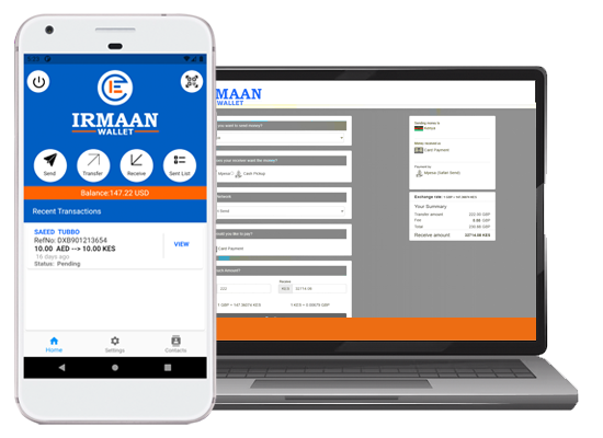 You can send and receive your money through Mobile App and Mobile Wallet.With Irmaan Wallet, it is accessible, efficient, safe, and secure.